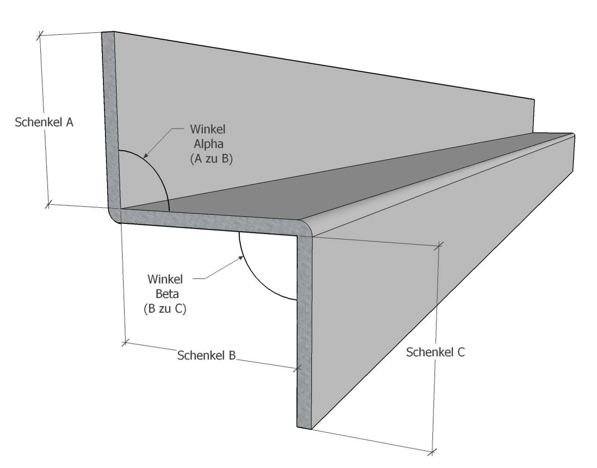 - Material und Kantwinkel rechts wählbar!