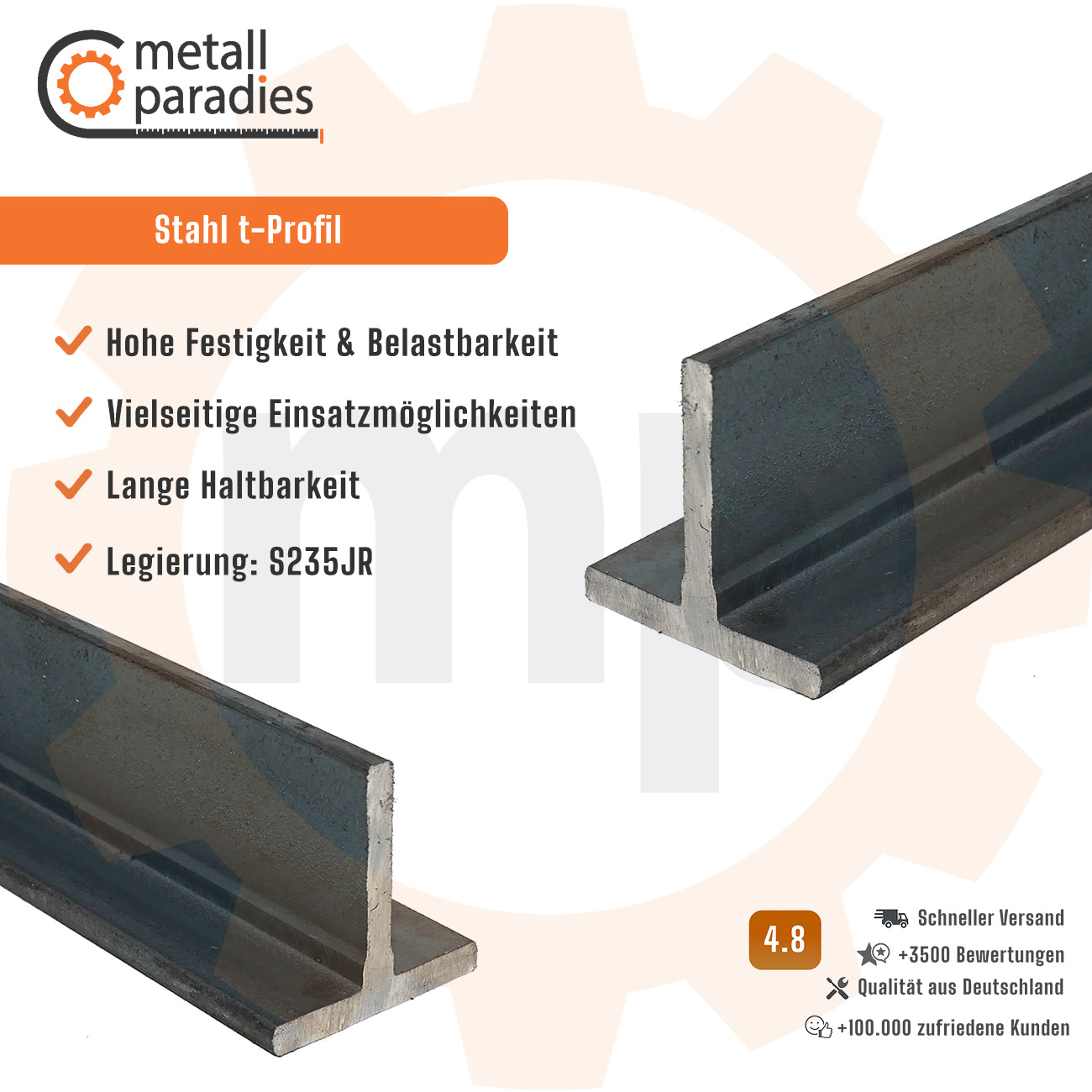 - Formtoleranzen nach EN 10055, d. h. bei der Flanschbreite: bis 50 mm: ± 1 mm Abweichung bei Flanschbreite und Steghöhe, bis 100 mm: ± 1,5 mm jeweils, über 100 mm: ± 2,0 mm jeweils.