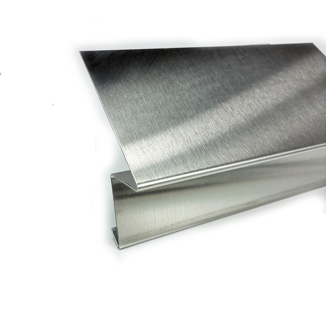 - Wahlweise aus Edelstahl (K240 gebürstet), verzinktem Stahl DX51, Kupfer, Titanzink, Aluminium (AlMg3) natur oder farbig beschichtet